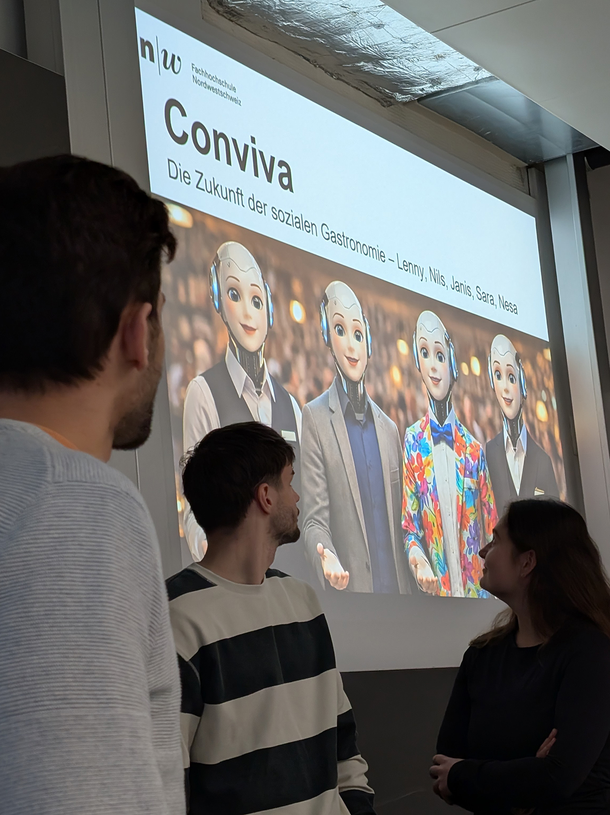Im Wahlmodul „Soziale Roboter aus technischer, wirtschaftlicher und ethischer Sicht“ vom 12. bis 14. Februar 2026 am FHNW-Campus Brugg-Windisch wurden von den Studenten und Studentinnen sechs Konzepte sozialer Roboter präsentiert. PlantBuddy ist ein humanoider Pflanzenpfleger, der Zimmerpflanzen automatisch bewässert, je nach Sonnenbedarf verschiebt und so für optimale Wachstumsbedingungen sorgt. Gluco-Guard richtet sich an Menschen mit Diabetes und kombiniert gesundheitliche Unterstützung mit emotionaler Begleitung in Form tierähnlicher Roboterfiguren. Coach Arnold ist ein Trainingsassistent für Fitnessstudios, der Mitglieder erkennt, personalisierte Trainingspläne erstellt, Übungen analysiert und zusätzlich organisatorische Aufgaben übernehmen kann. Conviva wurde als sozialer Serviceroboter für die Gastronomie konzipiert und fungiert im Restaurant als Gesprächspartner und Empfehlungsgeber für allein speisende Gäste. Babyball unterstützt Eltern im Alltag, fördert die motorische Entwicklung von Kleinkindern und integriert Sicherheitsfunktionen wie Kamera- und Benachrichtigungssysteme. CONNECTO schließlich ist ein Gebärdensprachenassistent, der gesprochene Sprache in Gebärdensprache übersetzt und so die Kommunikation zwischen hörenden und gehörlosen Menschen erleichtert. Alle Modelle wurden unter Verwendung von Bildgeneratoren visualisiert und mit Hilfe des Fünf-Dimensionen-Modells von Oliver Bendel beschrieben. Er führt das Wahlmodul unter verschiedenen Bezeichnungen und mit unterschiedlichen Schwerpunkten in Olten und Brugg-Windisch seit 2021 durch.