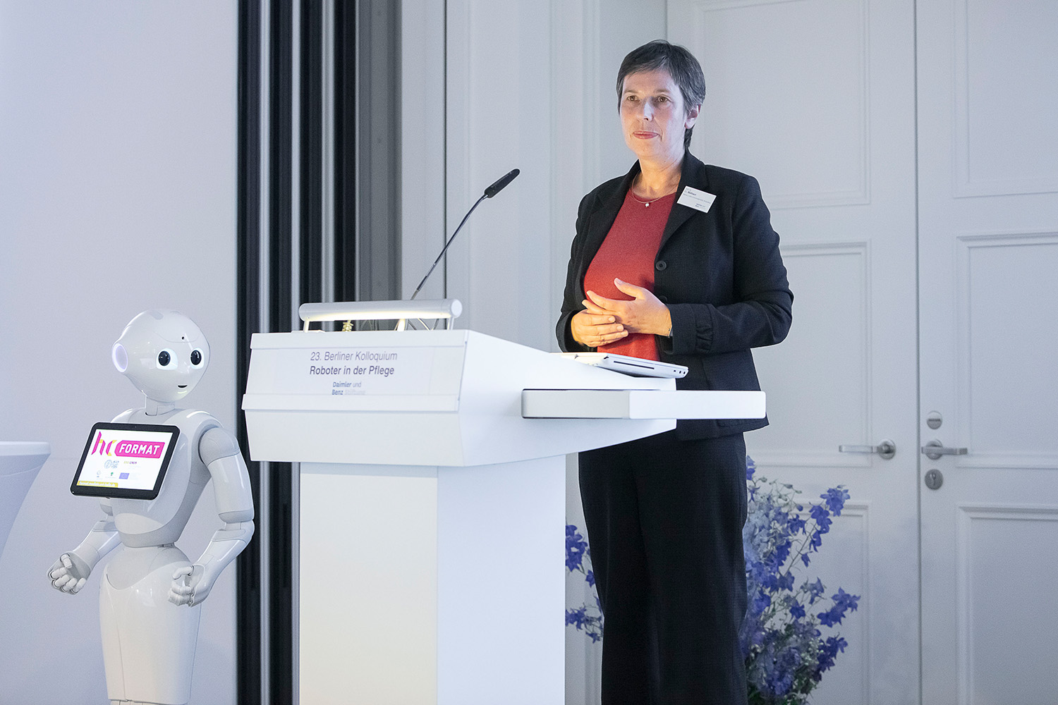 Beim 23. Berliner Kolloquium hielt Prof. Dr. Gundula Hübner von der Martin-Luther-Universität Halle-Wittenberg einen Vortrag mit dem Titel „Akzeptanz technischer Assistenzsysteme – eine Schnittstelle für alle“. „Technische Systeme werden vom Menschen leichter angenommen, wenn sie unauffällig sind und kaum erkennbare Veränderungen in alltäglichen Lebensabläufen erfordern. Ein erfolgreiches Beispiel dafür sind bekannte Notfallsysteme wie Sturzmatten. Internetbasierte Angebote, etwa Smart-Home-Anwendungen oder Kommunikationsplattformen, bringen komplexere Bedienungsansprüche mit sich – insbesondere, wenn keine Erfahrungen mit digitalen Medien vorliegen. Eine analoge Gestaltung der Bedienoberflächen kann deren Akzeptanz erhöhen und Betroffenen damit die soziale Teilhabe sowie den Austausch pflegerischer und medizinischer Informationen erleichtern. Die Potenziale dieser relativ leicht zu integrierenden digitalen Assistenzsysteme werden in laufenden Feldstudien getestet, erfahren in der öffentlichen Debatte zur Pflegeversorgung allerdings weniger Aufmerksamkeit als die Entwicklung von Robotern. Insbesondere humanoide Roboter sind faszinierend und scheinen vielversprechend, um die anstehenden Probleme in der Pflege zu lösen. Sicherlich können sie Pflegekräfte bei schweren körperlichen Arbeiten im stationären Bereich unterstützen. Eine offene Frage ist jedoch, inwieweit sie soziale Teilhabe oder emotionales Wohlbefinden fördern. Robotische Assistenzsysteme dürften auch gesellschaftlich eher dann akzeptiert werden, wenn diese nicht zum Synonym für einen weitgehenden Verzicht auf Pflegepersonal werden.“ (Abstract) Mehrere Medien berichteten über das Berliner Kolloquium, das am 22. Mai 2019 stattfand, beispielsweise Neues Deutschland und die Welt.