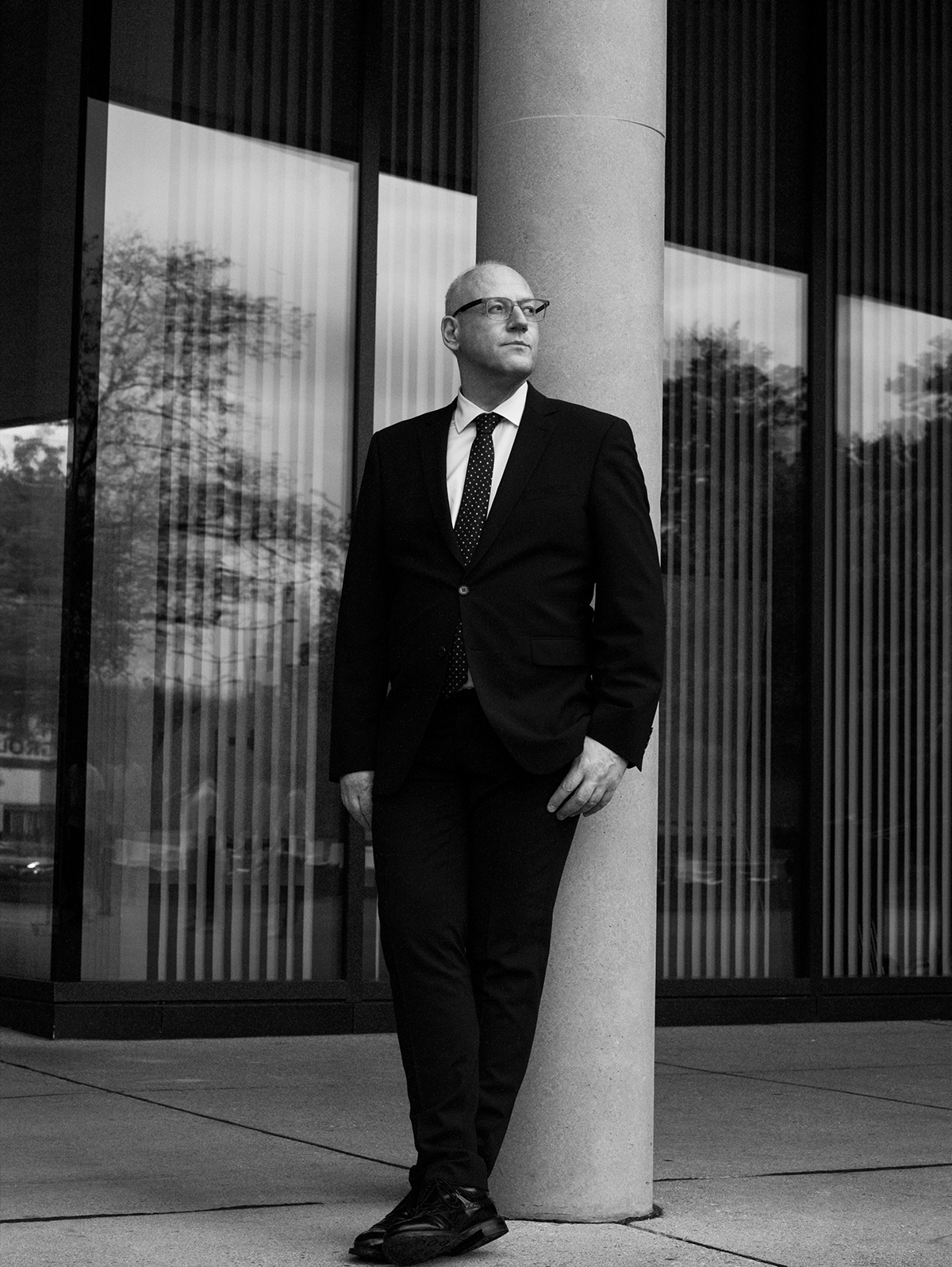 Abb.: Oliver Bendel am Campus Brugg-Windisch (Foto: Jork Weismann)