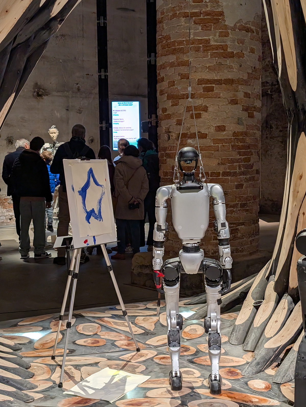 Abb.: Ein malender Roboter bei der Biennale Architettura 2025